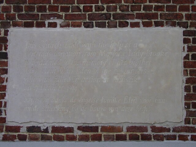 De afbeelding 'Kruiseke: Kerk: Gedenkplaat Eden' gemaakt door Decoodt, Hannelore wordt ter beschikking gesteld door Agentschap Onroerend Erfgoed (AOE) onder de volgende voorwaarden: Modellicentie voor gratis hergebruik, Naamsvermelding 4.0 Internationaal.