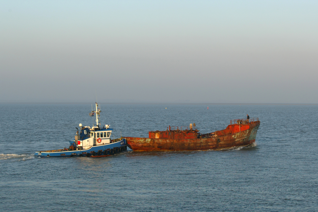 De vissersboot François Musin op de Westerschelde ; ter hoogte van Terneuzen-NL ; onderweg naar de restauratiewerf in Antwerpen.