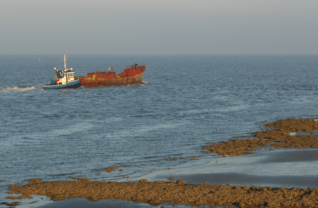 De vissersboot François Musin op de Westerschelde ; ter hoogte van Terneuzen-NL ; onderweg naar de restauratiewerf in Antwerpen.