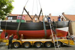 Kustvissersvaartuig OD.1 Martha wordt overgebracht naar het nieuwe Nationaal Visserijmuseum te Oostduinkerke
