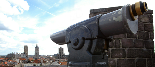 De afbeelding 'Zicht op de torens van Gent' gemaakt door Vandevorst, Kris wordt ter beschikking gesteld door Agentschap Onroerend Erfgoed (AOE) onder de volgende voorwaarden: Modellicentie voor gratis hergebruik, Naamsvermelding 4.0 Internationaal.