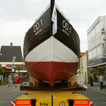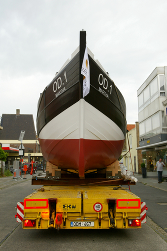 De afbeelding 'Kustvissersvaartuig OD.1 Martha wordt overgebracht naar het nieuwe Nationaal Visserijmuseum te Oostduinkerke' gemaakt door Vandevorst, Kris wordt ter beschikking gesteld door Agentschap Onroerend Erfgoed (AOE) onder de volgende voorwaarden: Modellicentie voor gratis hergebruik, Naamsvermelding 4.0 Internationaal.