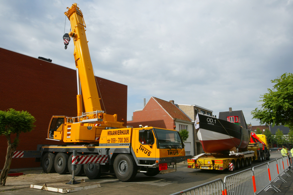 De afbeelding 'Kustvissersvaartuig OD.1 Martha wordt overgebracht naar het nieuwe Nationaal Visserijmuseum te Oostduinkerke' gemaakt door Vandevorst, Kris wordt ter beschikking gesteld door Agentschap Onroerend Erfgoed (AOE) onder de volgende voorwaarden: Modellicentie voor gratis hergebruik, Naamsvermelding 4.0 Internationaal.