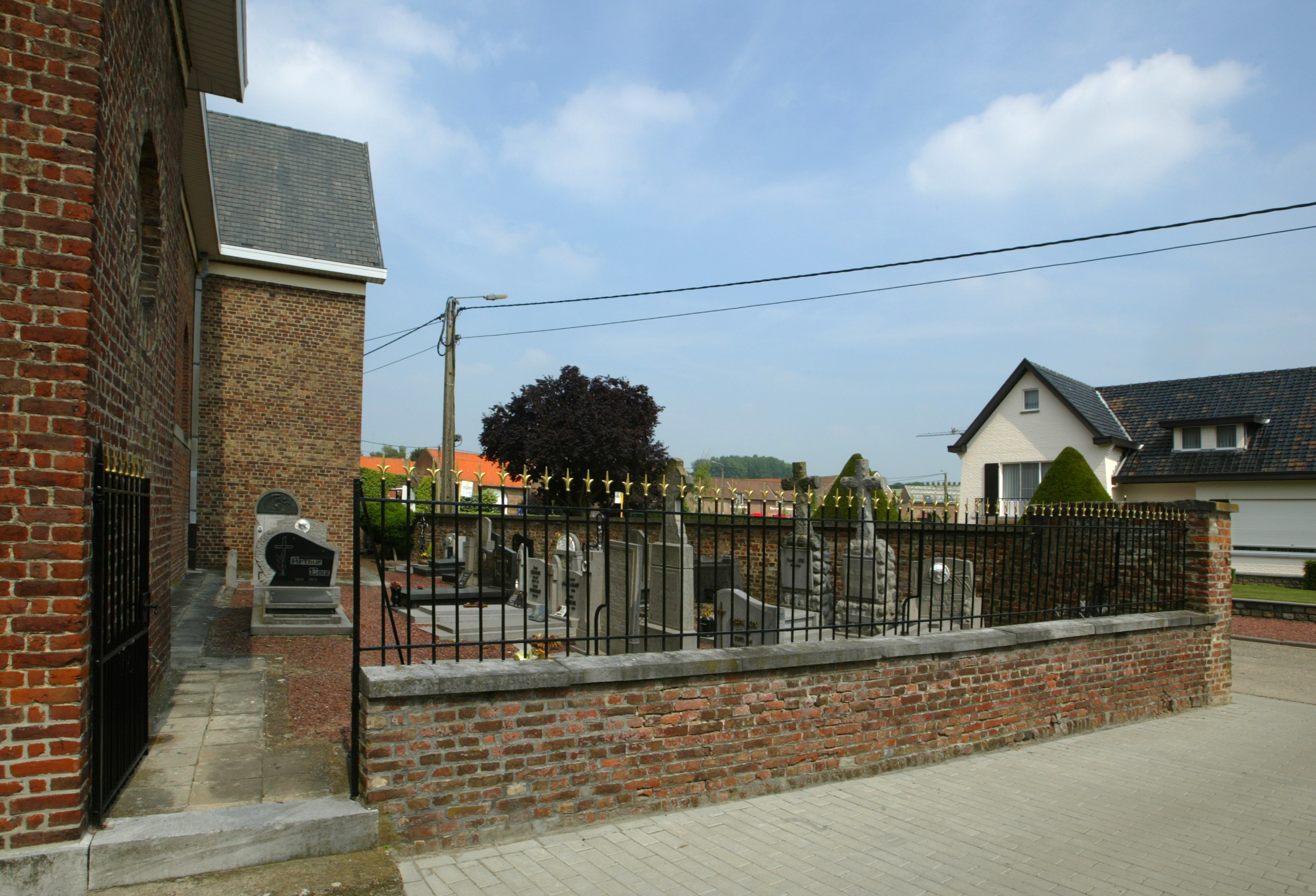 De afbeelding 'Smeedijzeren hek aan het kerkhof' gemaakt door Vandevorst, Kris wordt ter beschikking gesteld door Agentschap Onroerend Erfgoed (AOE) onder de volgende voorwaarden: Modellicentie voor gratis hergebruik, Naamsvermelding 4.0 Internationaal.