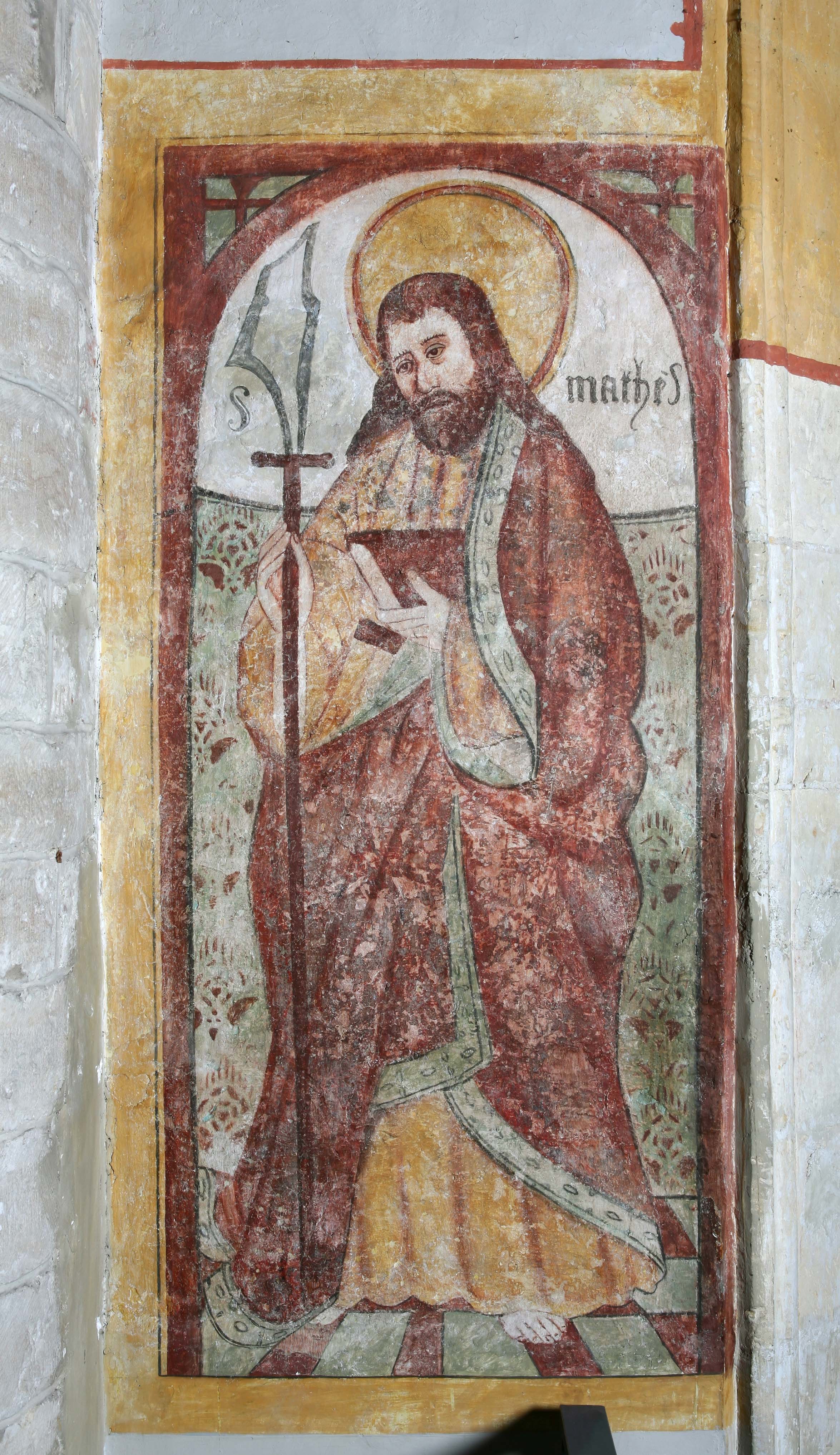 De apostel Mattëus in de zuidelijke transeptarm van de Sint-Genovevakerk van Zepperen
