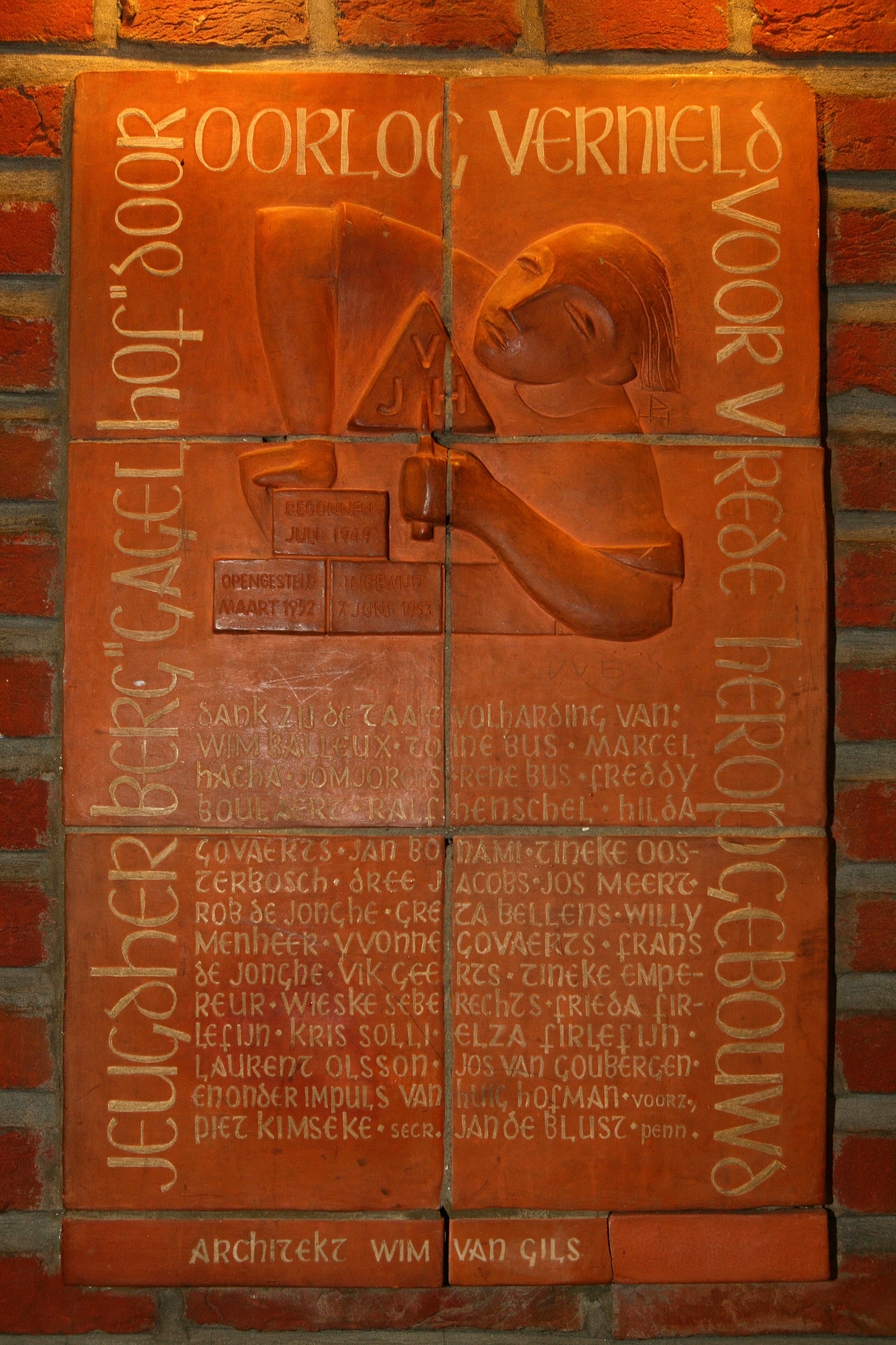 Jeugdherberg Gagelhof - arch. Renaat Braem ; 1949-1952 Gedenkplaat.