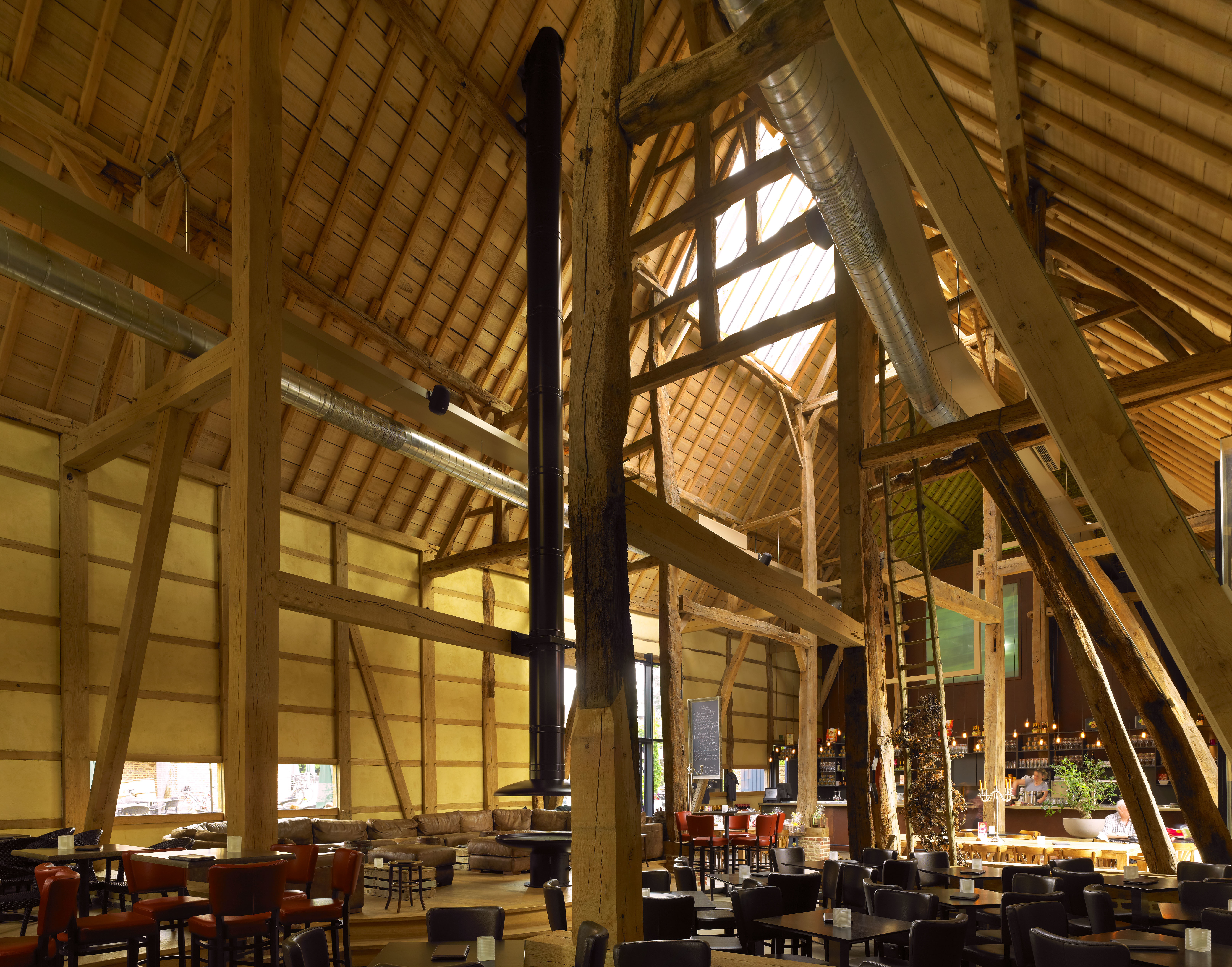 Brouwerij Wilderen: interieur van de vakwerkschuur