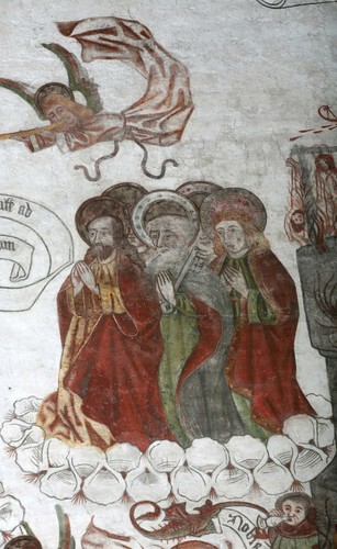 De afbeelding 'Detail uit het Laatste Oordeel in de zuidelijke transeptarm van de Sint-Genovevakerk van Zepperen' gemaakt door Vandevorst, Kris wordt ter beschikking gesteld door Agentschap Onroerend Erfgoed (AOE) onder de volgende voorwaarden: Modellicentie voor gratis hergebruik, Naamsvermelding 4.0 Internationaal.