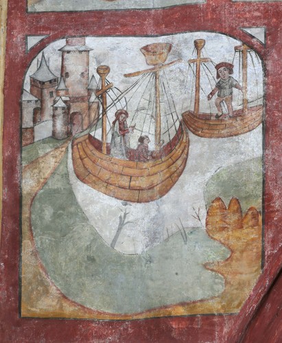 De afbeelding 'Detail uit de legende van de Heilige Genoveva van Parijs in de zuidelijke transeptarm van de Sint-Genovevakerk van Zepperen' gemaakt door Vandevorst, Kris wordt ter beschikking gesteld door Agentschap Onroerend Erfgoed (AOE) onder de volgende voorwaarden: Modellicentie voor gratis hergebruik, Naamsvermelding 4.0 Internationaal.