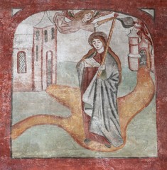 De afbeelding 'De Heilige Genoveva van Parijs in de zuidelijke transeptarm van de Sint-Genovevakerk van Zepperen' gemaakt door Vandevorst, Kris wordt ter beschikking gesteld door Agentschap Onroerend Erfgoed (AOE) onder de volgende voorwaarden: Modellicentie voor gratis hergebruik, Naamsvermelding 4.0 Internationaal.