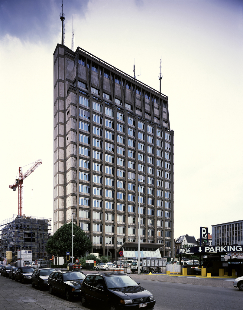 De afbeelding 'Administratief centrum ; zg. 'Politietoren' van arch. Renaat Braem' gemaakt door Vandevorst, Kris wordt ter beschikking gesteld door Agentschap Onroerend Erfgoed (AOE) onder de volgende voorwaarden: Modellicentie voor gratis hergebruik, Naamsvermelding 4.0 Internationaal.
