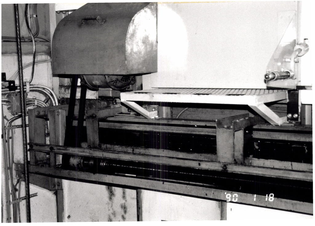 Opschrift achterzijde afbeelding: L.O/sluiting schachtdeuren - servo met worm./nu vernieuwd