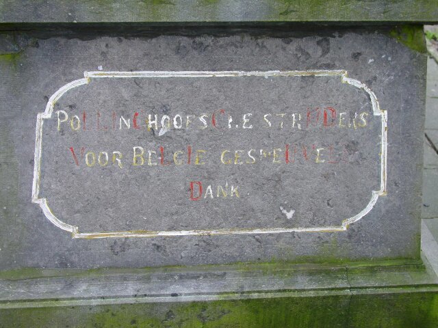De afbeelding 'Pollinkhove: Gedenkteken militaire doden: plaat' gemaakt door Bogaert, Nele wordt ter beschikking gesteld door Agentschap Onroerend Erfgoed (AOE) onder de volgende voorwaarden: Modellicentie voor gratis hergebruik, Naamsvermelding 4.0 Internationaal.