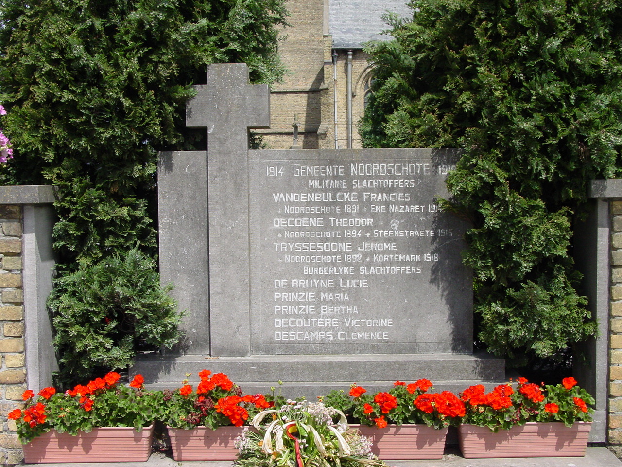 De afbeelding 'Noordschote: Gedenksteen burgerlijke en miltaire doden: Close-Up' gemaakt door Decoodt, Hannelore wordt ter beschikking gesteld door Agentschap Onroerend Erfgoed (AOE) onder de volgende voorwaarden: Modellicentie voor gratis hergebruik, Naamsvermelding 4.0 Internationaal.