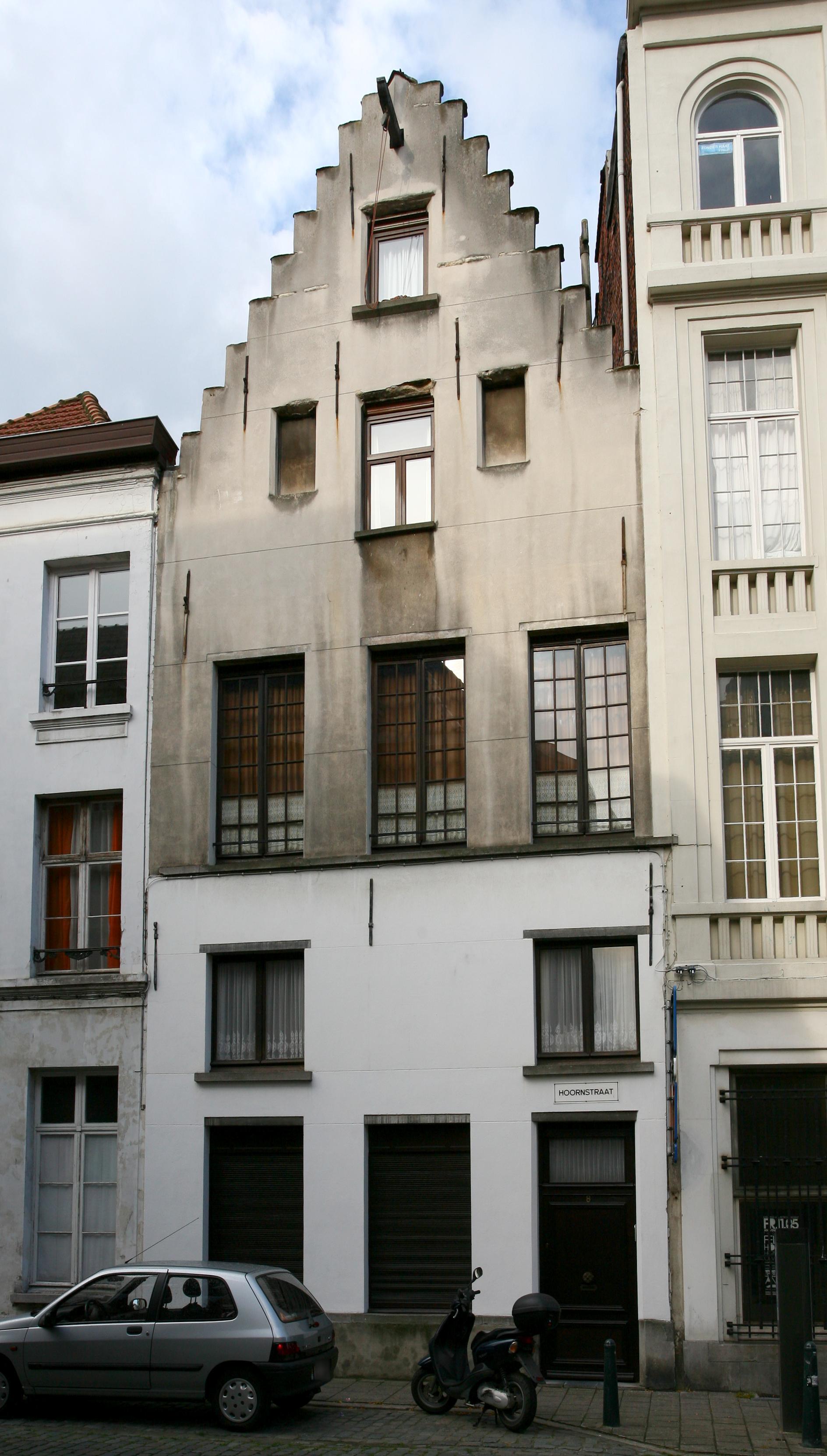 De afbeelding 'Antwerpen Hoornstraat 8' gemaakt door Vandevorst, Kris wordt ter beschikking gesteld door Agentschap Onroerend Erfgoed (AOE) onder de volgende voorwaarden: Modellicentie voor gratis hergebruik, Naamsvermelding 4.0 Internationaal.