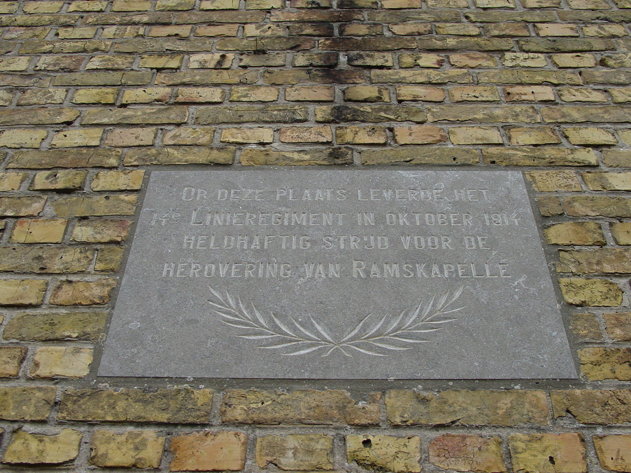 Ramskapelle: Hemmestraat 1: Gedenkplaat 14de Linieregiment: Detail