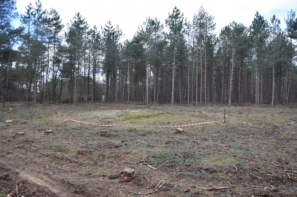 Foto van één van de gereconstrueerde grafheuvels van het grafveld van de Dorperheide van Kaulille, na de ontbossing van maart 2019.