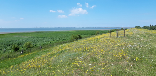De afbeelding 'Het Groot-Buitenschor: zicht op de Scheldedijk' gemaakt door Verboven, Hilde wordt ter beschikking gesteld door Agentschap Onroerend Erfgoed (AOE) onder de volgende voorwaarden: Modellicentie voor gratis hergebruik, Naamsvermelding 4.0 Internationaal.