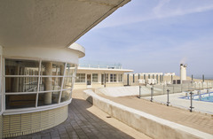 De afbeelding 'Strandaccomodatiegebouw Oostduinkerke' gemaakt door Vandevorst, Kris wordt ter beschikking gesteld door Agentschap Onroerend Erfgoed (AOE) onder de volgende voorwaarden: Modellicentie voor gratis hergebruik, Naamsvermelding 4.0 Internationaal.