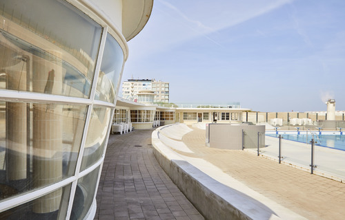 De afbeelding 'Strandaccomodatiegebouw Oostduinkerke' gemaakt door Vandevorst, Kris wordt ter beschikking gesteld door Agentschap Onroerend Erfgoed (AOE) onder de volgende voorwaarden: Modellicentie voor gratis hergebruik, Naamsvermelding 4.0 Internationaal.