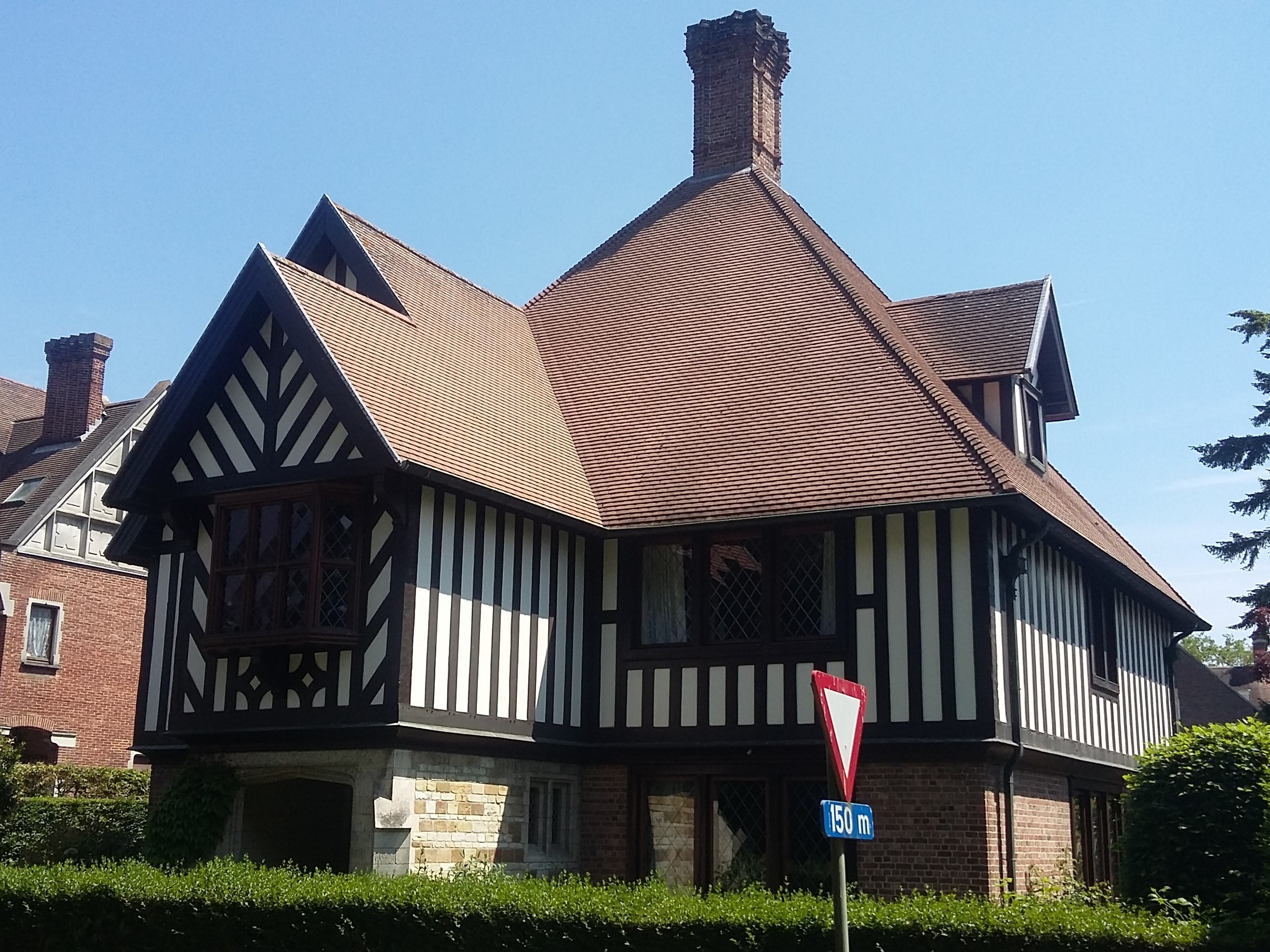De afbeelding 'Villa in cottagestijl' gemaakt door Vandeweghe, Evert wordt ter beschikking gesteld door Agentschap Onroerend Erfgoed (AOE) onder de volgende voorwaarden: Modellicentie voor gratis hergebruik, Naamsvermelding 4.0 Internationaal.