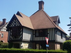 De afbeelding 'Villa in cottagestijl' gemaakt door Vandeweghe, Evert wordt ter beschikking gesteld door Agentschap Onroerend Erfgoed (AOE) onder de volgende voorwaarden: Modellicentie voor gratis hergebruik, Naamsvermelding 4.0 Internationaal.