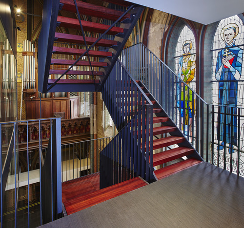 Herbestemming van een schoolkerk tot polyvalente ontmoetingsruimte, klaslokalen en leraarskamer