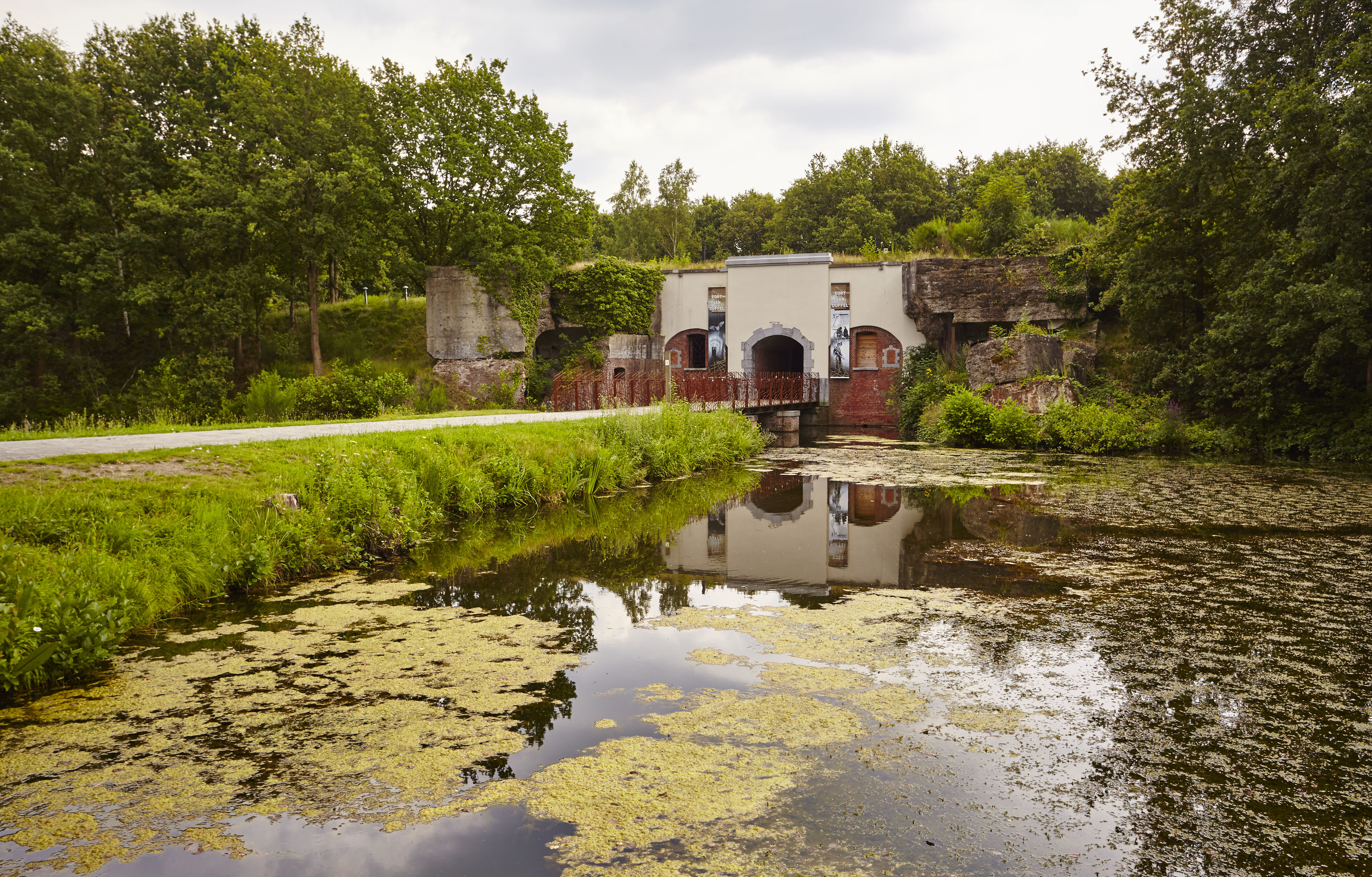 Herbestemming van militair fort tot belevingscentrum en horeca. Foto genomen voor de uitreiking van de Onroerenderfgoedprijs 2016. Het spoorwegfort in Duffel is een verdiende laureaat van deze editie.