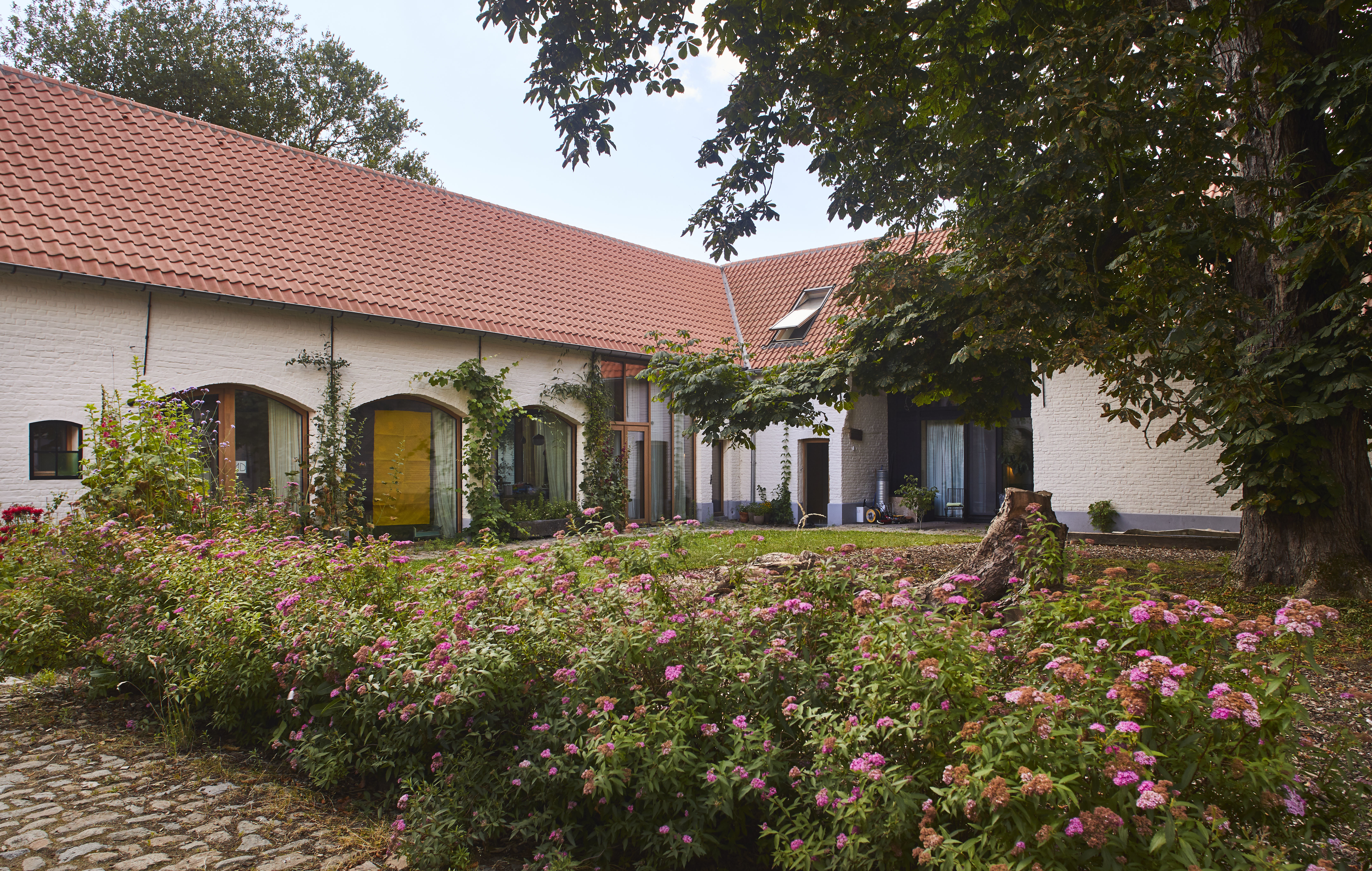 Herbestemming van hoeve en landbouwstokerij tot meerdere gezinswoningen. Foto genomen voor de uitreiking van de Onroerenderfgoedprijs 2019. Hof ter Beemt in Zingem is een verdiende laureaat van deze editie.