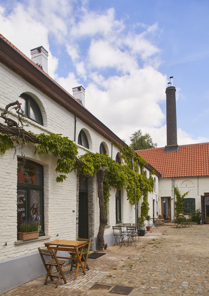 Herbestemming van hoeve en landbouwstokerij tot meerdere gezinswoningen. Foto genomen voor de uitreiking van de Onroerenderfgoedprijs 2019. Hof ter Beemt in Zingem is een verdiende laureaat van deze editie.