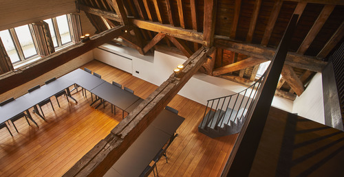 Herbestemming van gildehuis tot representatiehuis van havenbedrijf. Foto genomen voor de uitreiking van de Onroerenderfgoedprijs 2019. Het gildehuis van de Vrije Schippers in Gent is de winnaar van deze editie.