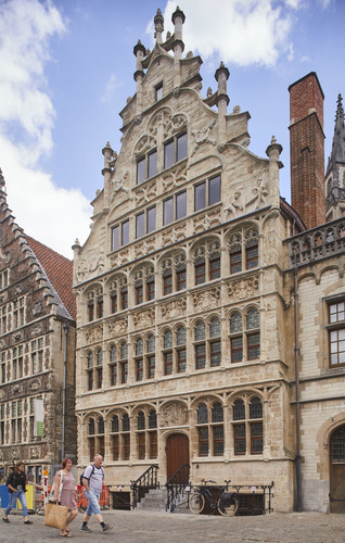Herbestemming van gildehuis tot representatiehuis van havenbedrijf. Foto genomen voor de uitreiking van de Onroerenderfgoedprijs 2019. Het gildehuis van de Vrije Schippers in Gent is de winnaar van deze editie.