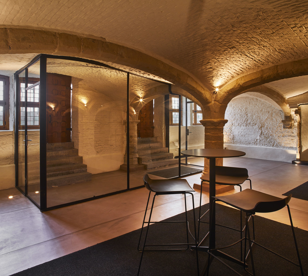 Herbestemming van gildehuis tot representatiehuis van havenbedrijf. Foto genomen voor de uitreiking van de Onroerenderfgoedprijs 2019. Het gildehuis van de Vrije Schippers in Gent is de winnaar van deze editie.