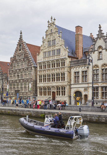 Herbestemming van gildehuis tot representatiehuis van havenbedrijf. Foto genomen voor de uitreiking van de Onroerenderfgoedprijs 2019. Het gildehuis van de Vrije Schippers in Gent is de winnaar van deze editie.
