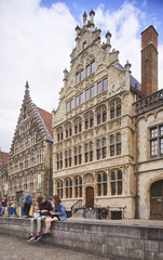 Herbestemming van gildehuis tot representatiehuis van havenbedrijf. Foto genomen voor de uitreiking van de Onroerenderfgoedprijs 2019. Het gildehuis van de Vrije Schippers in Gent is de winnaar van deze editie.