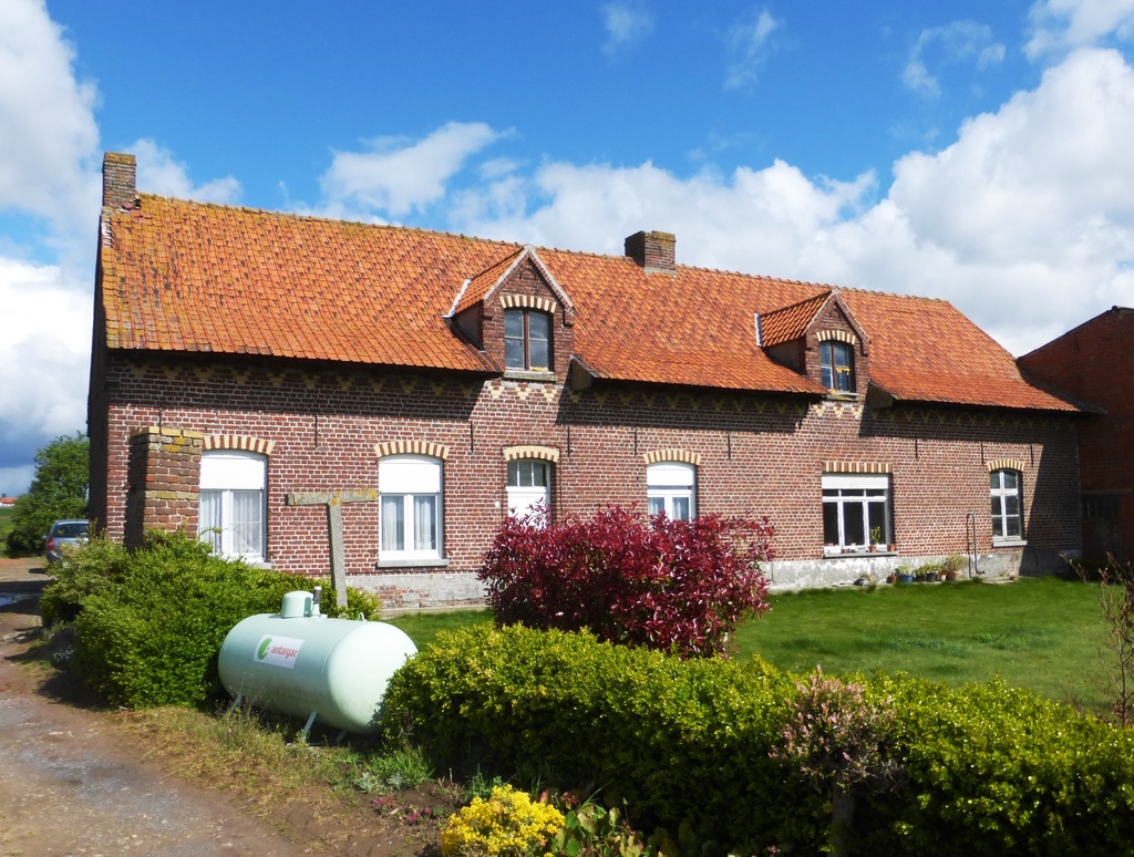 De afbeelding 'Wederopbouwhoeve met gebouw in vakwerk' gemaakt door Debonne, Vincent wordt ter beschikking gesteld door Agentschap Onroerend Erfgoed (AOE) onder de volgende voorwaarden: Modellicentie voor gratis hergebruik, Naamsvermelding 4.0 Internationaal.