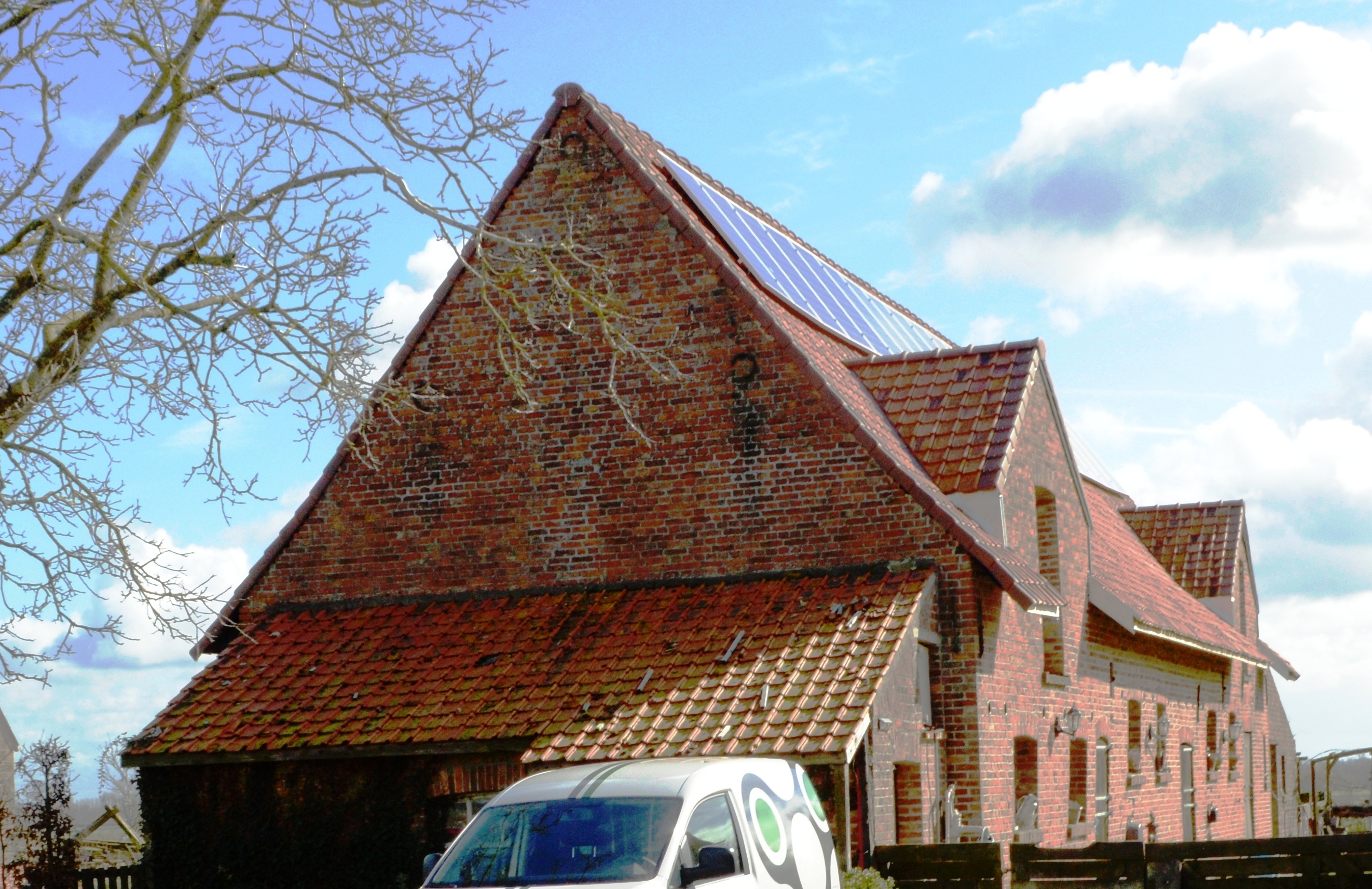 De afbeelding 'Wederopbouwhoeve met tabaksast' gemaakt door Becuwe, Frank wordt ter beschikking gesteld door Agentschap Onroerend Erfgoed (AOE) onder de volgende voorwaarden: Modellicentie voor gratis hergebruik, Naamsvermelding 4.0 Internationaal.