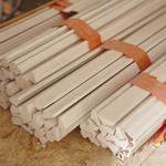 Ambachtelijke fabricage van nieuwe gipsen lijsten.