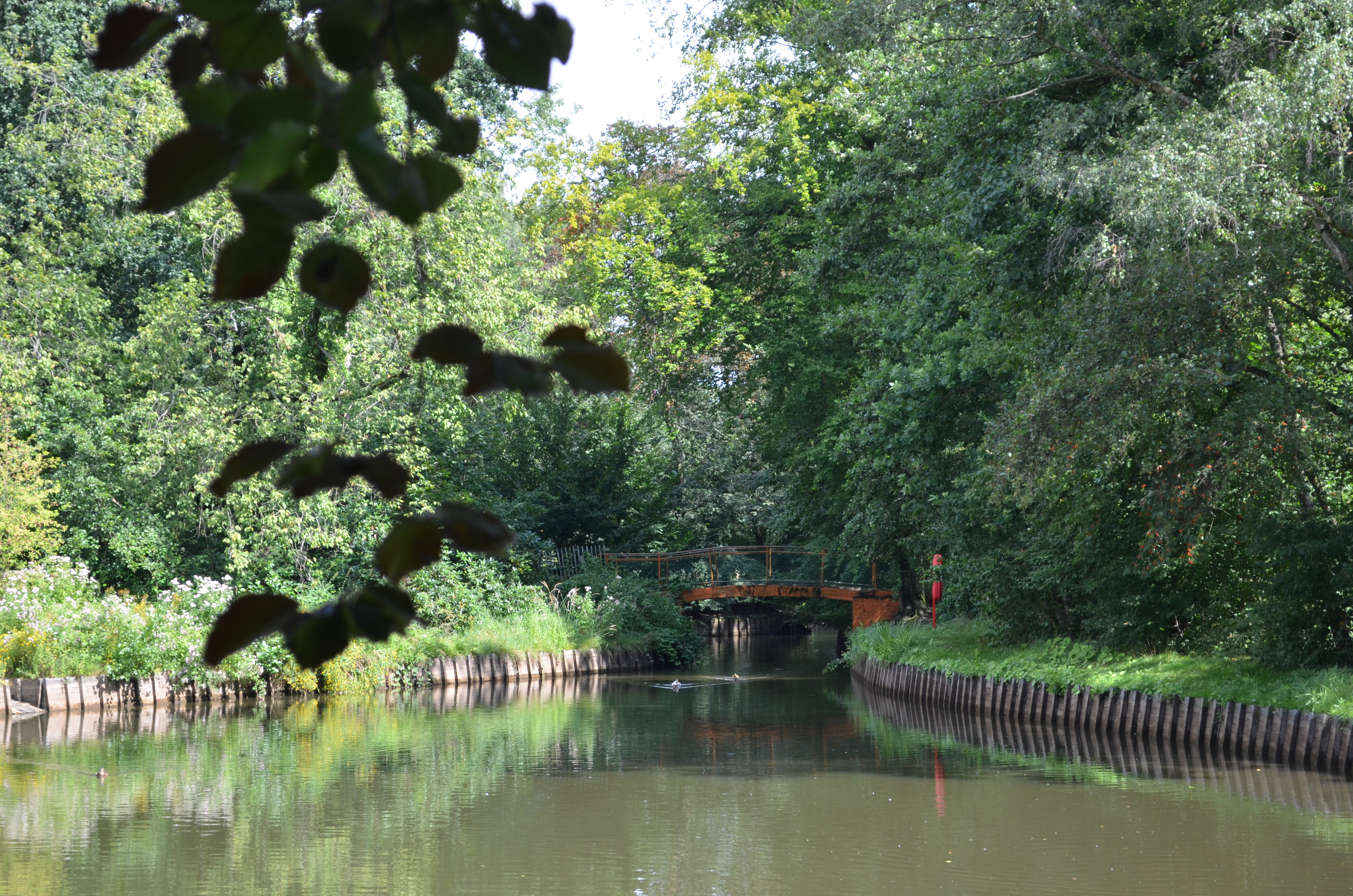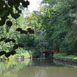 Recente brug over de vijver.