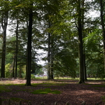 Beukengroep langsheen de noordoostelijke grens van het grote gazon.