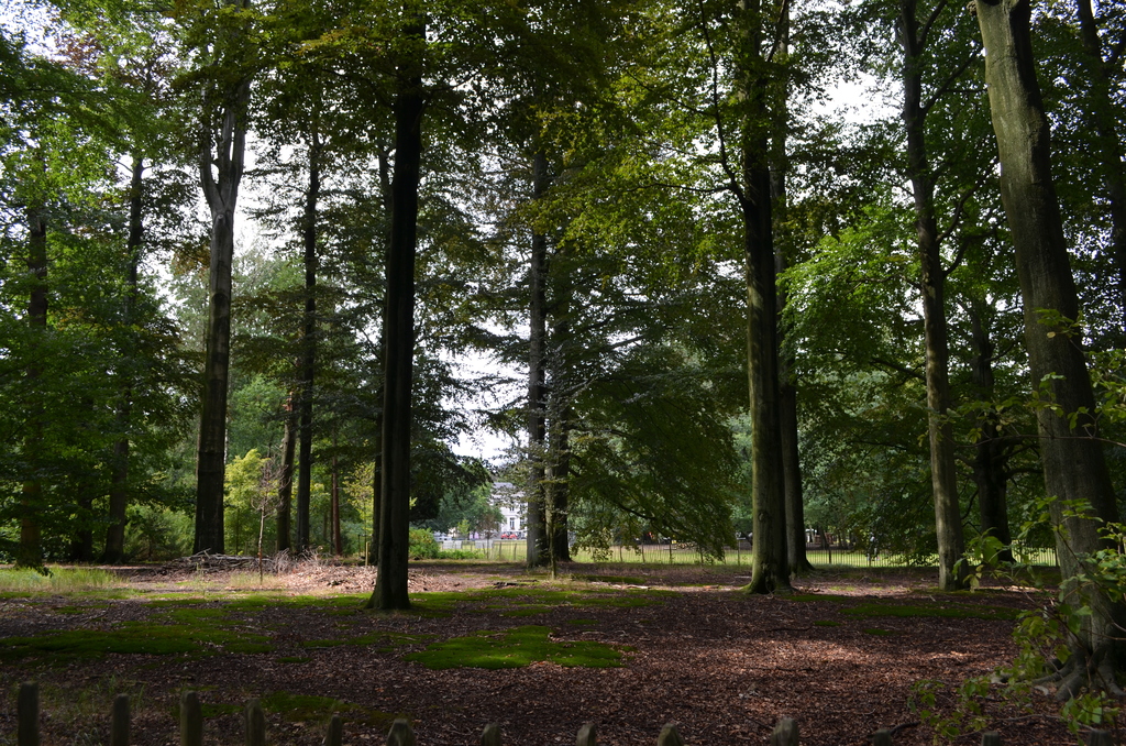 Beukengroep langsheen de noordoostelijke grens van het grote gazon.