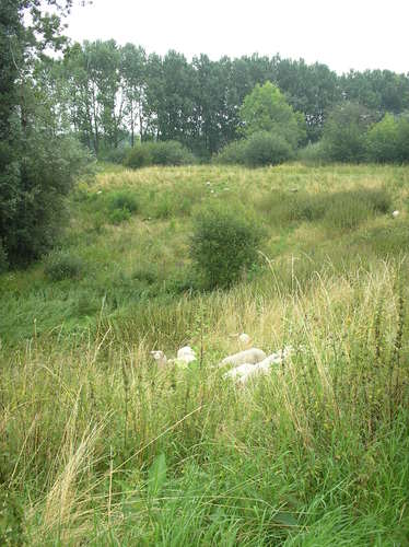 De afbeelding 'Moerzeke Schapen begrazen de polderdijken' gemaakt door de Haan, Aukje wordt ter beschikking gesteld door Agentschap Onroerend Erfgoed (AOE) onder de volgende voorwaarden: Modellicentie voor gratis hergebruik, Naamsvermelding 4.0 Internationaal.