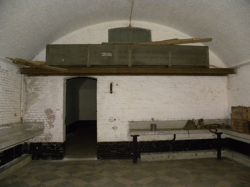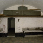 Waterinstallatie en wasbakken in één van de kamers van het hoofdfrontgebouw van het fort van Walem.