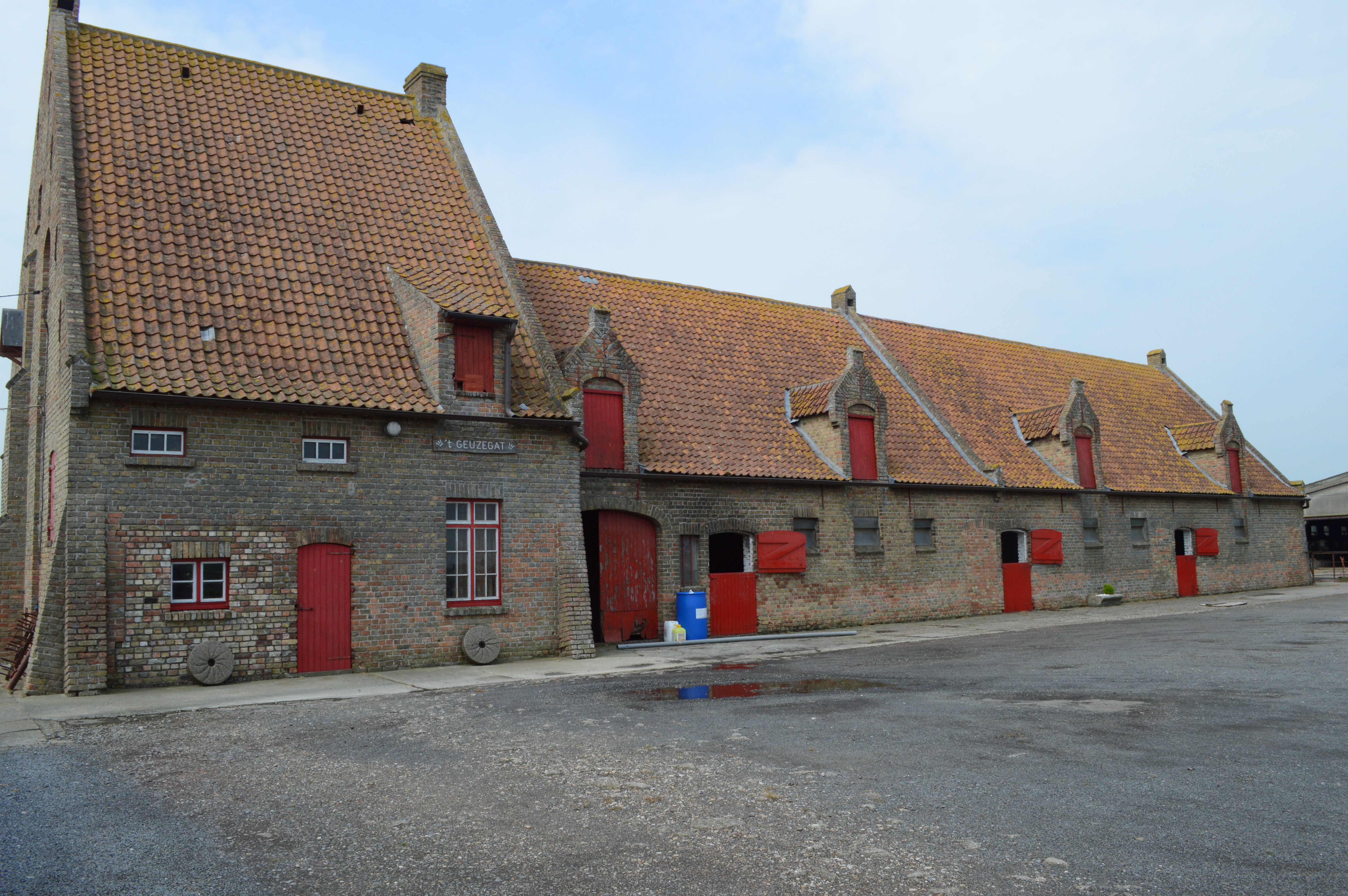 De afbeelding 'Wederopbouwhoeve 't Geuzegat' gemaakt door Becuwe, Frank wordt ter beschikking gesteld door Agentschap Onroerend Erfgoed (AOE) onder de volgende voorwaarden: Modellicentie voor gratis hergebruik, Naamsvermelding 4.0 Internationaal.