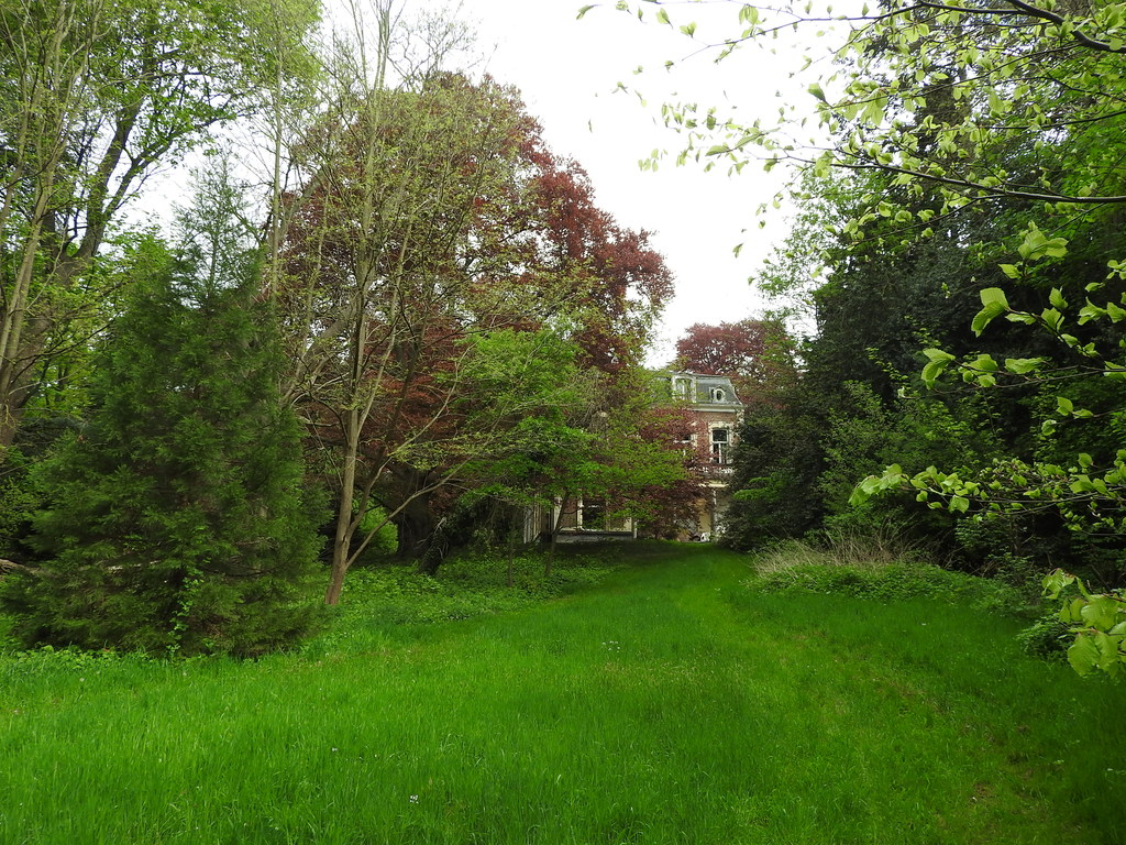 Gazon ten zuiden van het landhuis, aflopend richting Tiensesteenweg.
