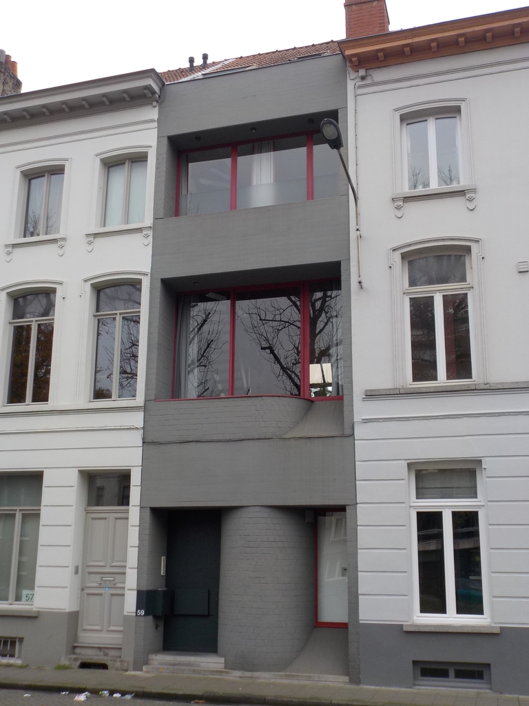 De afbeelding 'Architectenwoning Stoop' gemaakt door Vandeweghe, Evert wordt ter beschikking gesteld door Agentschap Onroerend Erfgoed (AOE) onder de volgende voorwaarden: Modellicentie voor gratis hergebruik, Naamsvermelding 4.0 Internationaal.