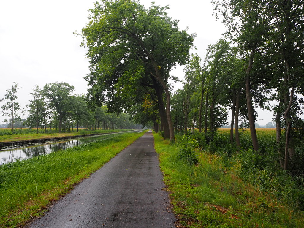 Kanaal met bomenrijen in landbouwgebied