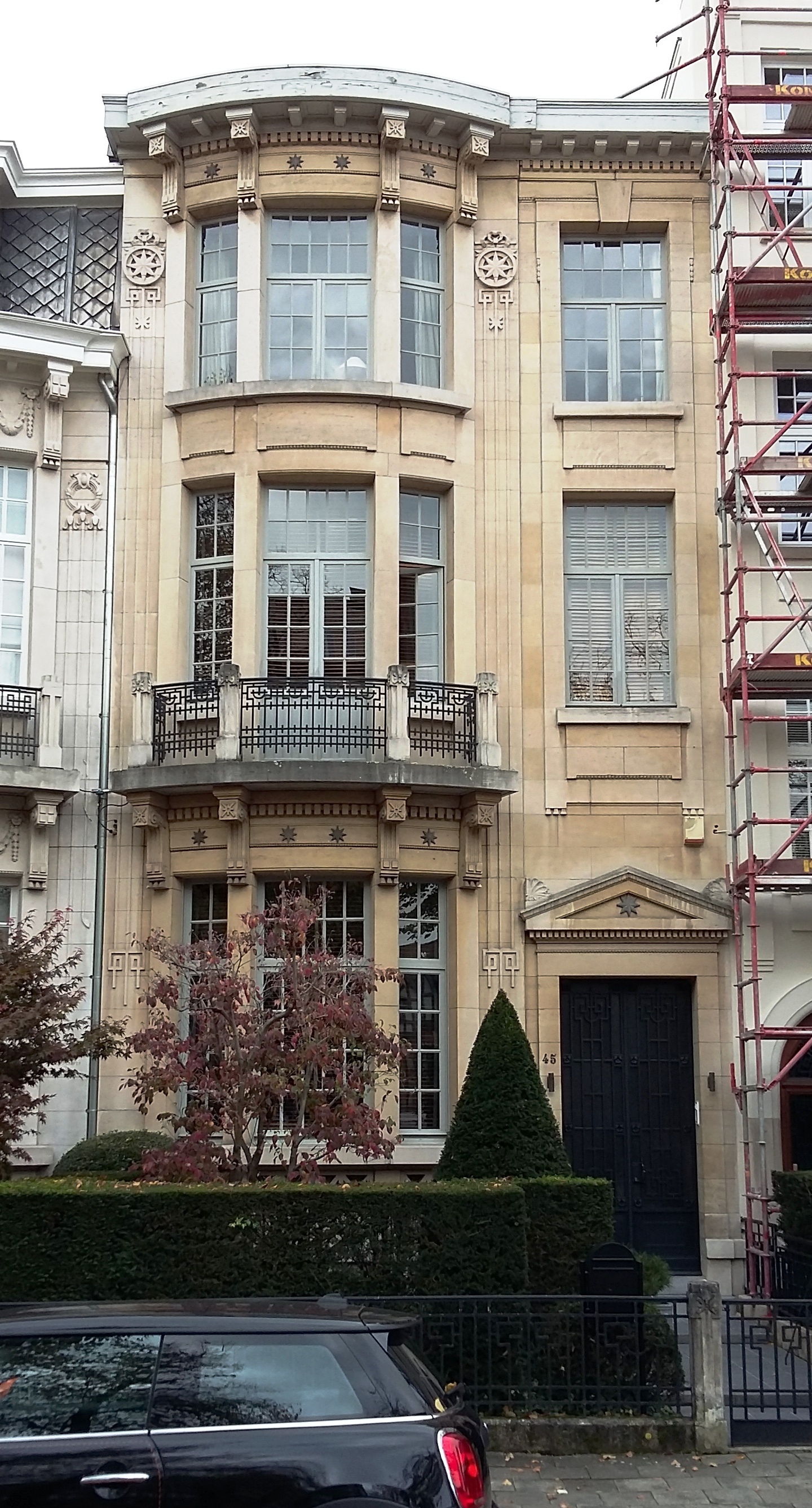 De afbeelding 'Antwerpen Koninklijkelaan 45' gemaakt door Braeken, Jo wordt ter beschikking gesteld door Agentschap Onroerend Erfgoed (AOE) onder de volgende voorwaarden: Modellicentie voor gratis hergebruik, Naamsvermelding 4.0 Internationaal.