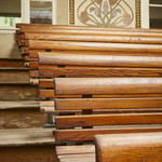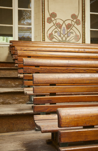 Het Ursulinenklooster Sint-Angela met belangrijke tuin en art-nouveau-feestzaal. De tribune in de feestzaal.