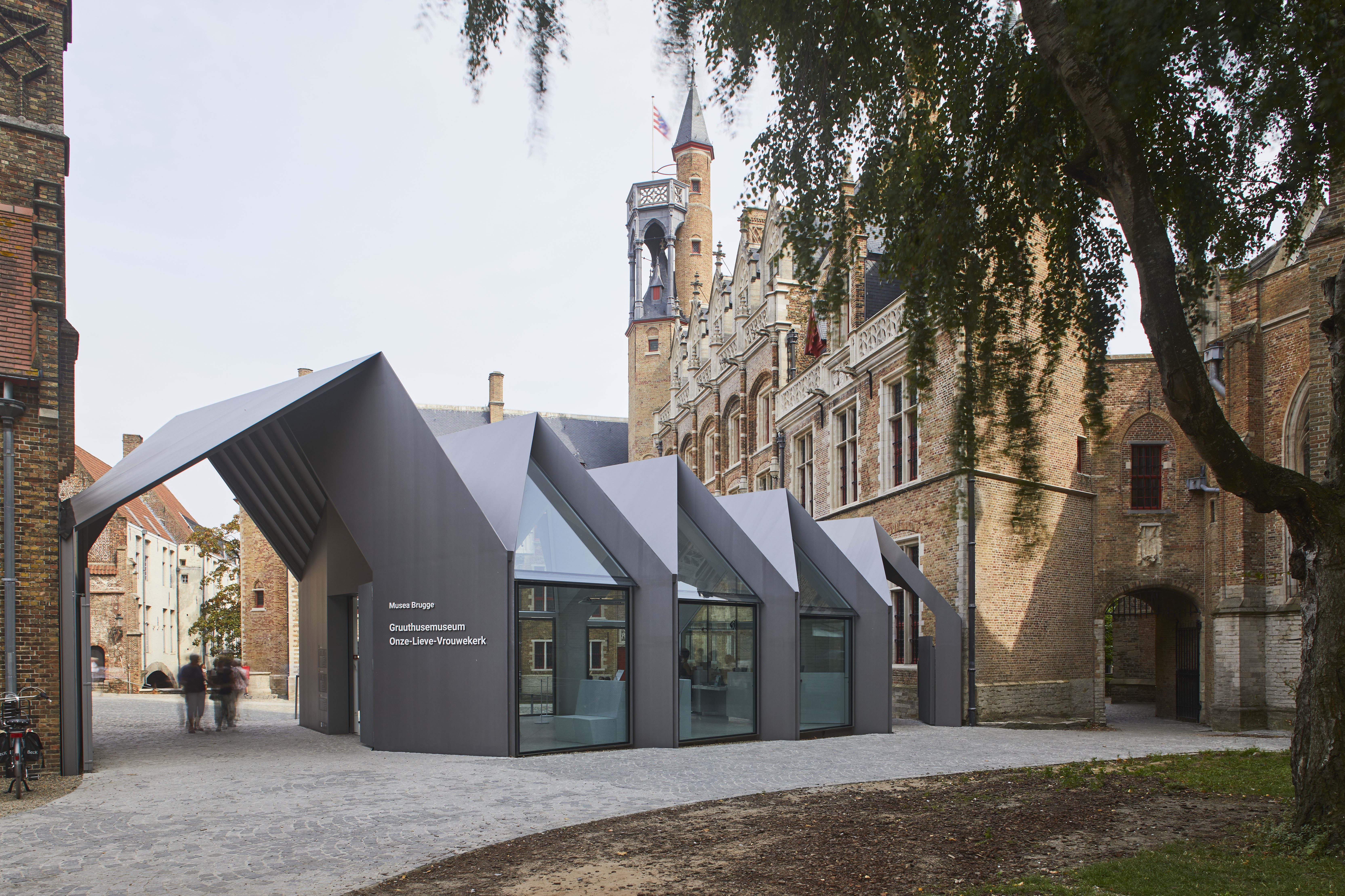 Het Gruuthusemuseum met ontvangstpaviljoen ontworpen door Avapartners.